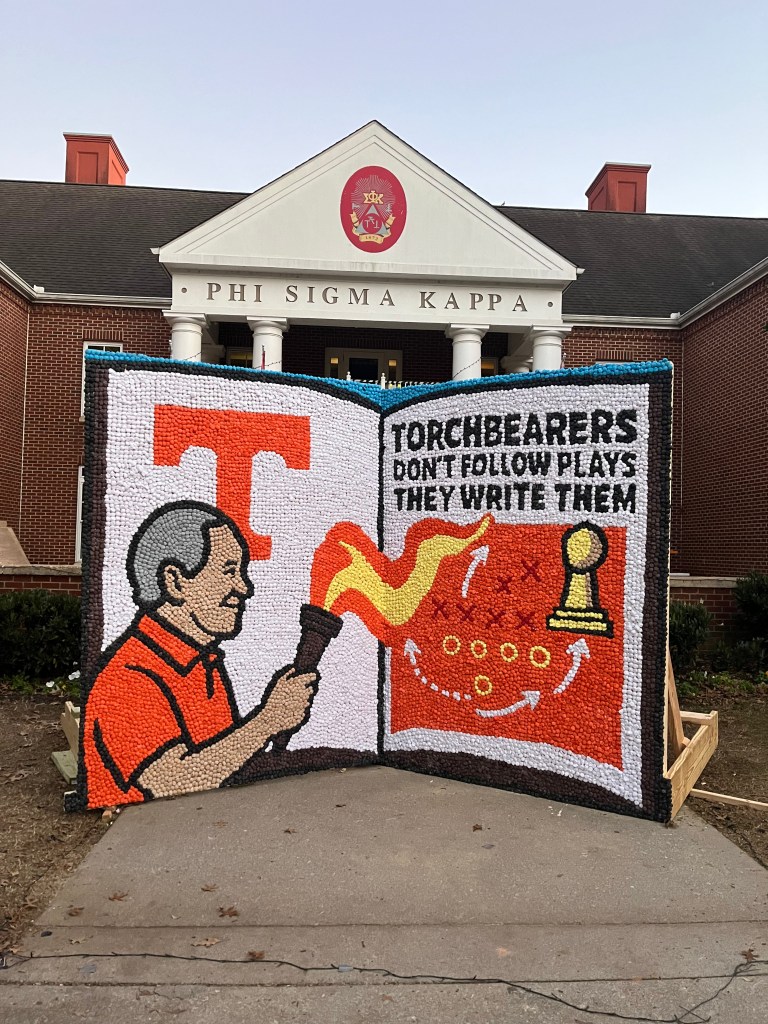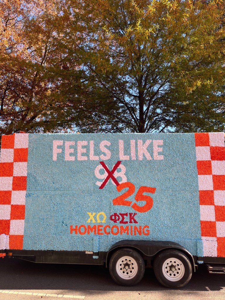 Morale is high at 1800 Fraternity Park Drive! This year, we partnered with Chi Omega for homecoming and had a great week putting together our float and lawn display. We are proud of the outcome and thank Chi Omega for their help!